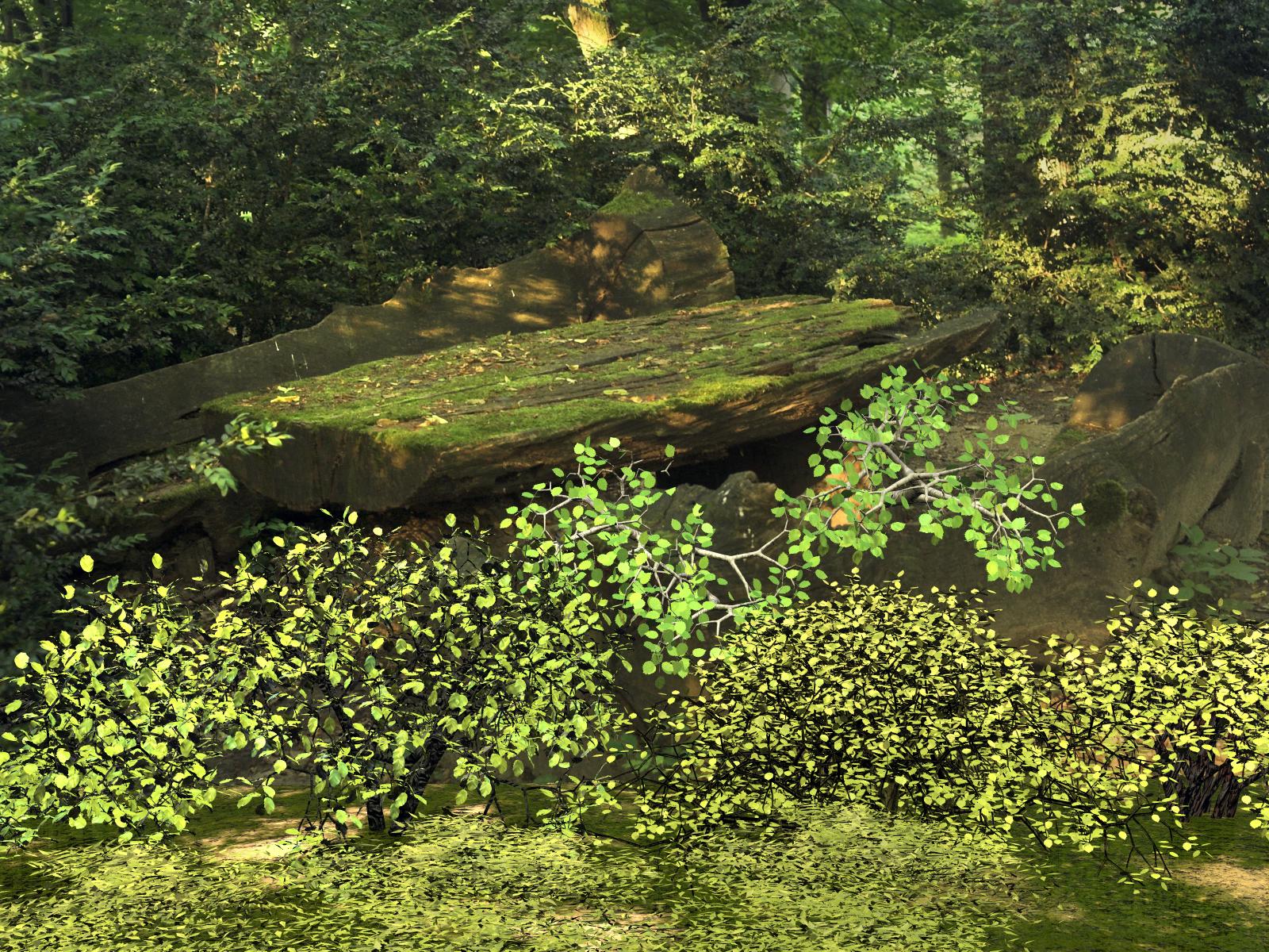 • Hier mal ein Beispiel mit viel Belag auf dem Waldboden....mit Quelle im Vordergrund. Auch die Bäume im Hintergrund sind Objekte....also nix mit Hintergrundbild!