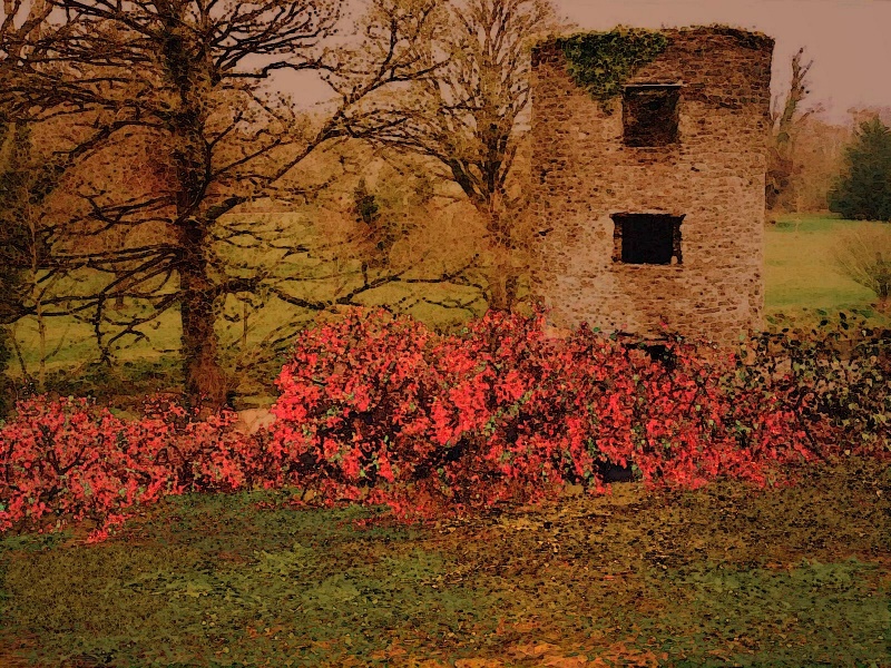 ...und...weil´s so schön ist, hier einweiteres aus der sageschen Faultierrenderwerkstatt...die Ruine mitsamt Hintergrund eine "Phototapete"...der Vordergrund in bryce erstellt, zusammen durchgerendert, im PI noch die Beleuchtung nachgebessert und durch den Kunstfilter "Aquarell" gejagt....