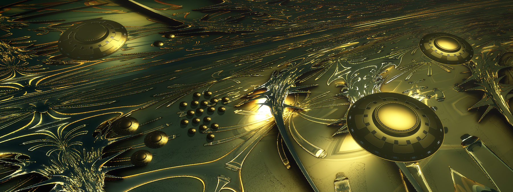 ... alles ausser UFOs ist Mandelbulb. Den Boden bildet die Mandelbulb-Alphamap, darüber die UFOs, das Ganze in Vue gerendert !