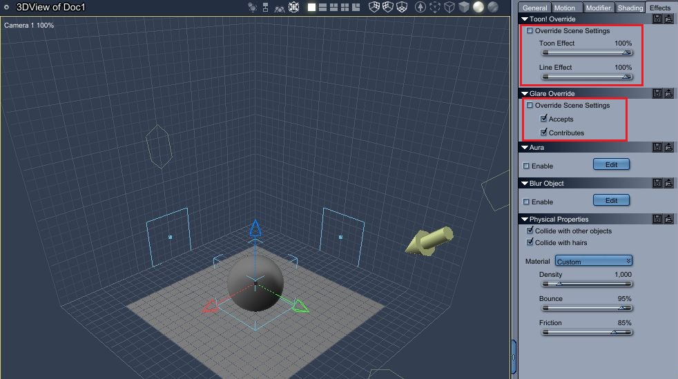 Ddie Optionen Glare Override und Toon Override sind also dann nur auf den Glare- bzw. Tooneffekt anwendbar?