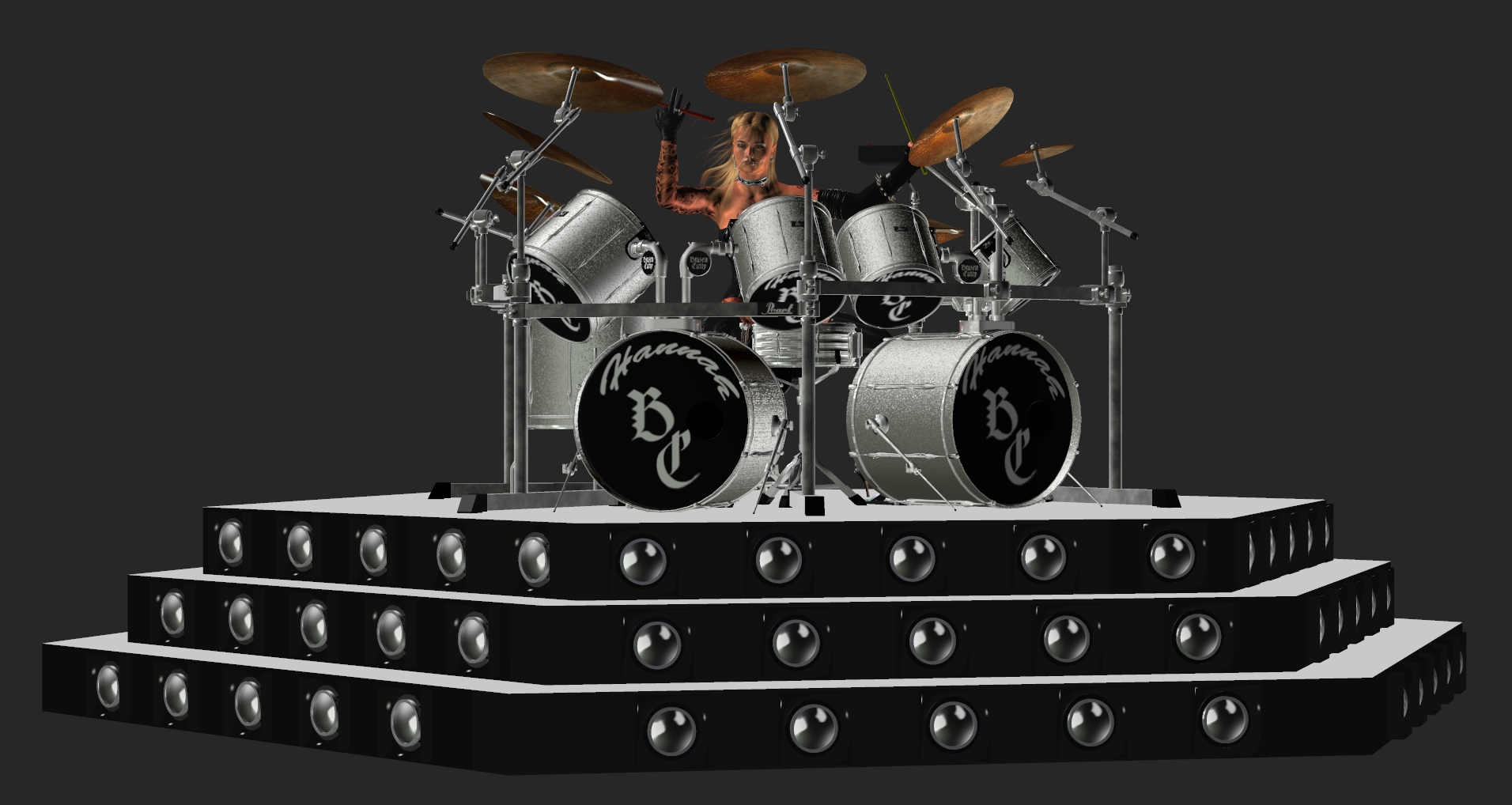 Ach ja, in meinem E - Gitarren - Thread sprach ich von nem neuen drum riser, habe mich deswegen gestern noch hingesetzt und könnte ihn mir so in etwa vorstellen ( modelliert in Hex, gerendert in PP 2010 )