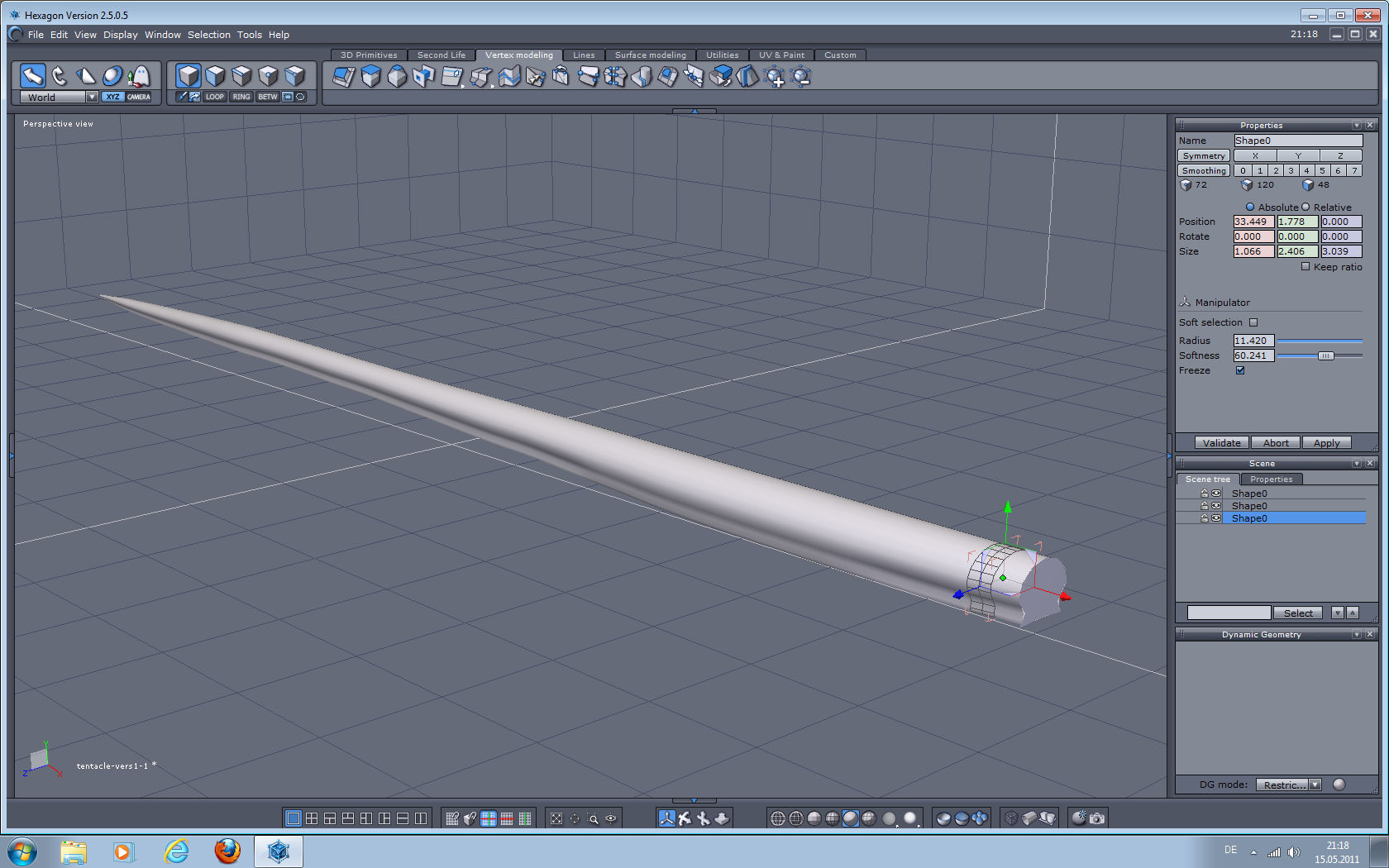 • Weiter gehts: Tentacula MK-I besteht nun aus 43 Segmenten. Habe mich erstmals auch ein wenig an den Displacement-Brushes in Hexagon versucht.