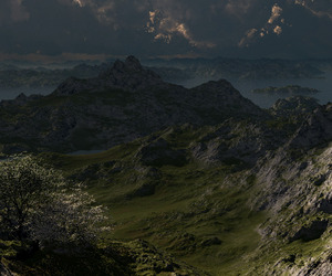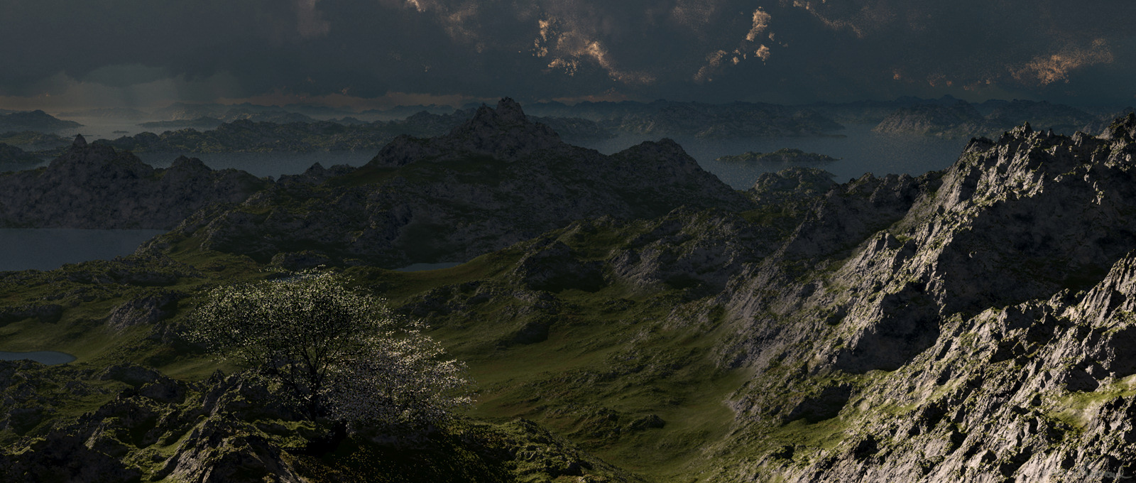 Mir gefällt das mit dem Baum sehr gut. By the way, die Seen (die Wasserebene) hätten ein bissl mehr Reflexionen vertragen können, sodaß sich die Felsen darin etwas wiederspiegeln (mag sein, dass es schon so eingestellt ist, durch die Wolken aber nicht so erscheint).