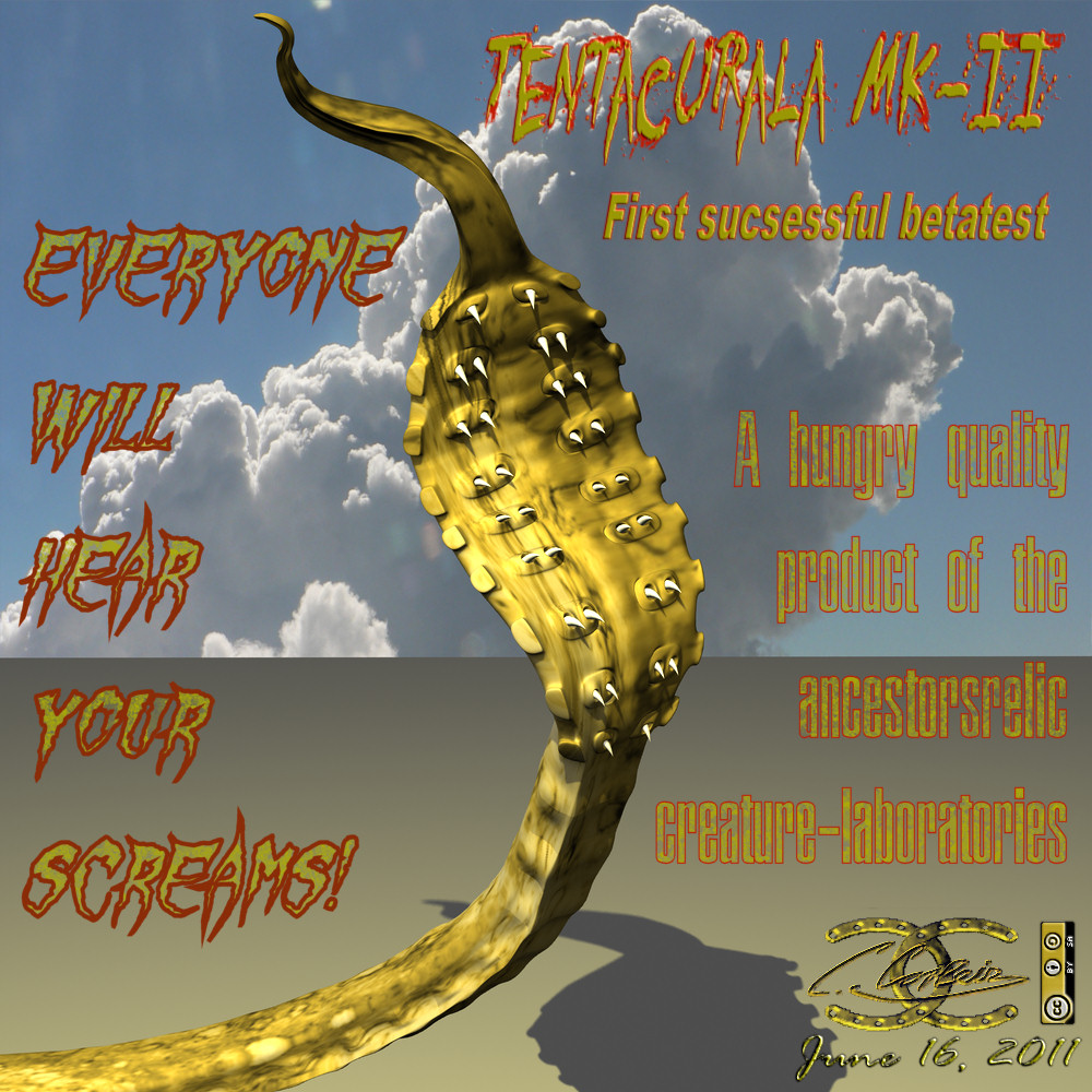 "Tentacurala MK-I" erfreut sich überraschend grosser Beliebtheit im Download... Doch wie es bei Erstmodellen so ist, einige "Kinderkrankheiten" stecken noch drin. So gab es (wenn auch wenige) Fälle, in denen ergriffene Damen ihrem Schicksal entkamen... Schnell wurde eine ausführliche Untersuchung im "ancestorsrelic Monster-Lab" durchgeführt, und die Ursache entdeckt: Frisch aufgetragenes Sonnenöl!