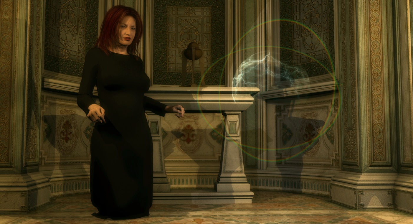 Ich nehme mal an die Lady kniet vor einem Altar oder so ähnlich und plötzlich war da diese sehr schöne Lichterscheinung.......