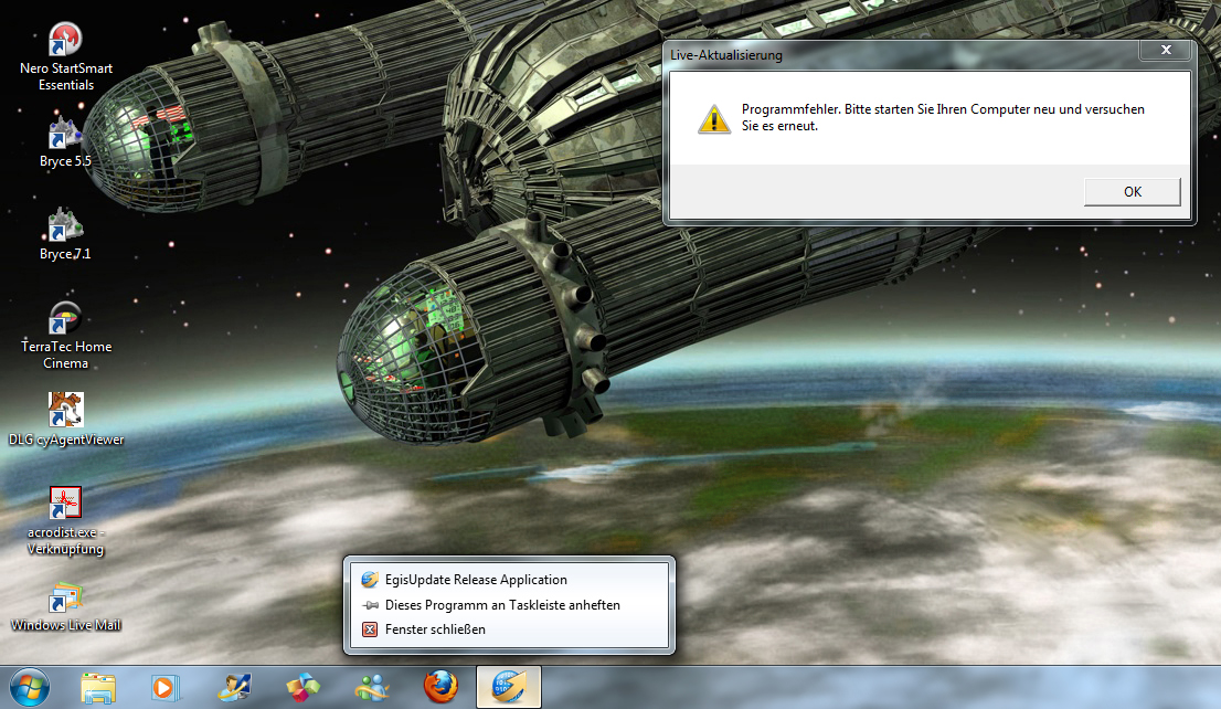 DIE Fehlermeldung habe ich nicht. Dafür funktioniert bei mir die Grafikdarstellung seit dem Update der Grafikkartentreiber nicht mehr richtig - genauso wie sich der Adobe Reader nicht mehr aktualisieren läßt.