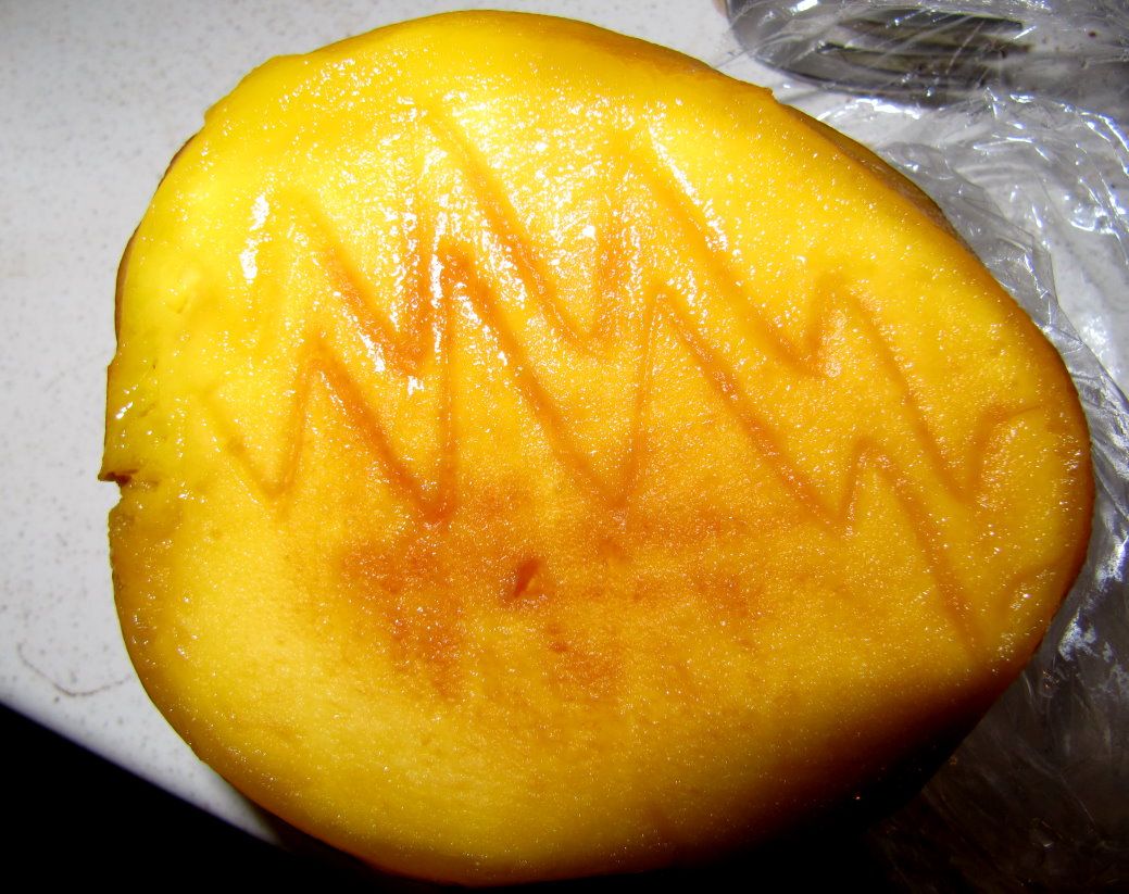 Ein paar Tage bevor mich die Stimmbandentzündung erwischt hat, habe ich beim Aufschneiden einer Mango etwas wirklich Merkwürdiges gefunden.