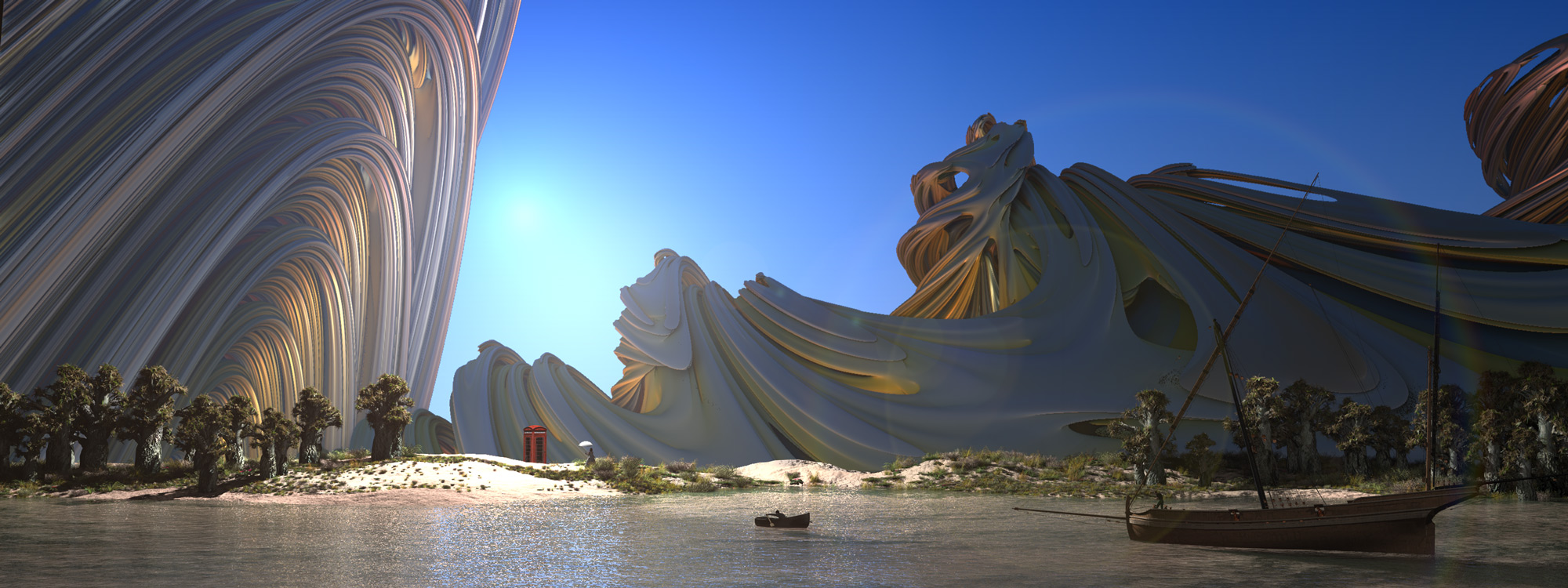 Was mir allerdings auffällt: Die Berge (Fraktale?) haben einen Blaustich in den Schattenpartien, der sollte sich im Rest der Szene in den Schatten wiederholen. Ist aber nur ein kleines Detail ![]()