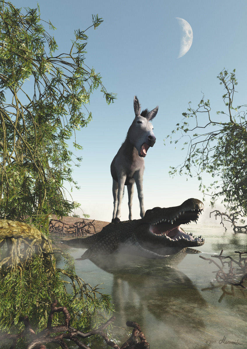 mutig, mutig. ich habe einmal gelesen, wenn krokos/aligatoren das maul offen haben sind die satt und ruhen - anscheinend weiß dass eselchen auch.