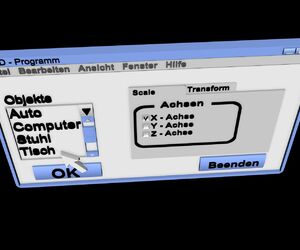 Hier mal eine Bastelei die aus langer Weile entstanden ist ein 3D-Programm im doppelten Sinne. Vielleicht könnte so ja dann Windows 10 aussehen, mal Microsoft den Vorschlag machen. :D:D:D:D
