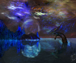 sehr "anderweltlich"... allerdings finde ich die beiden eingeklinkten Bild-/Texturpartien/"Nebel"flächen oben links und rechts etwas irritierend. Vielleicht sollten auch nur die Übergänge dort etwas weicher ausfallen, um den "Traumcharakter" deutlicher heraus zu stellen... ![]()