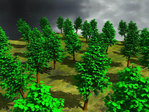 Wenn nicht, dann erstelle doch diverse Bäume und verteile sie dann auf der Fläche durch replizieren oder als Gruppen etc.