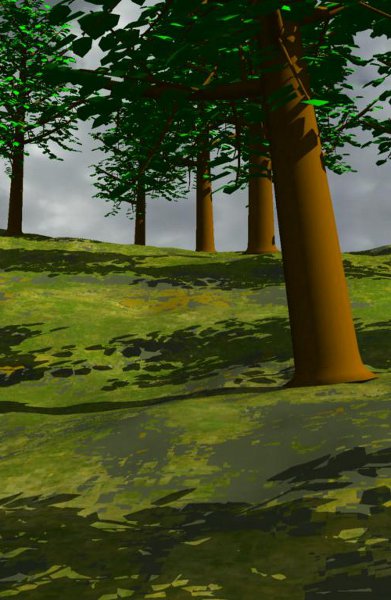 • Die mitgelieferten Texturen der Bäume sind eher für den Hintergrund geeignet... Willst du sie nach vorne setzen, musst du halt bessere Texturen nehmen