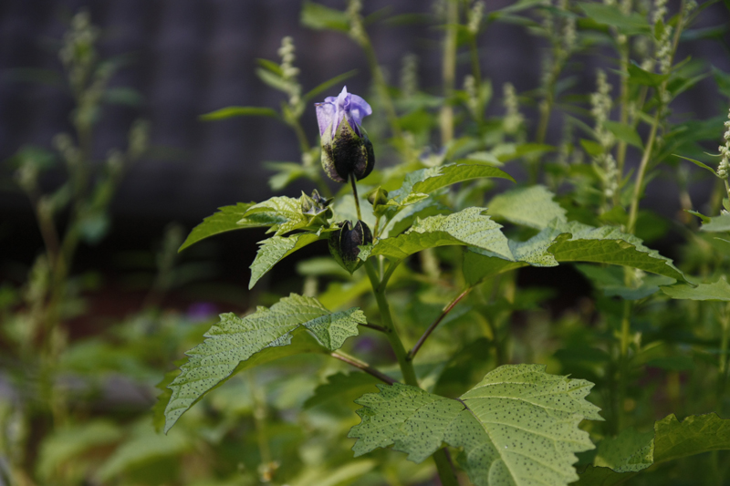 Das ist eine "Nicandra physaloides" oder "Blaue Lampionblume"....Die orangene Version der Lampionblume, die Physalis, kennst Du sicher, die sieht man auch häufiger in Blumensträussen, die blaue ist seltener. Obwohl ihre Frucht dann ähnlich aussieht, wie die der Physalis ( die man essen kann und die besonders reich an Vitamin c ist) ist die Frucht der Nicandra giftig. Sie kommt ursprünglich aus den Anden in Südamerika und ist bei uns als Zierpflanze eingesetzt und daher auch zuweilen ausgewildert wie bei Dir