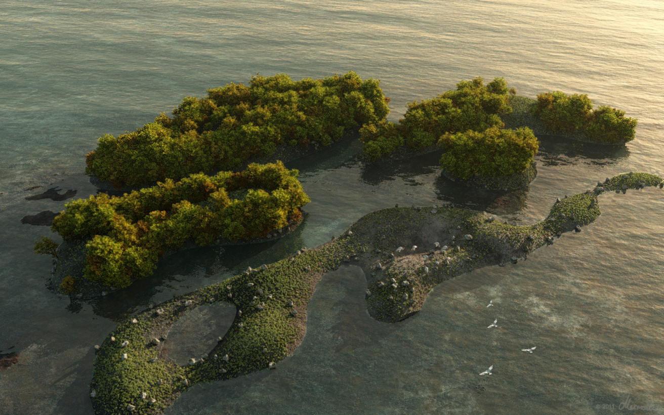 Inseln im Wind und so weit weg, dass Vögel ungestört leben können.... Mal wieder ein Bild, welches durch Anregung durch ein foto bei Bing entstanden ist...