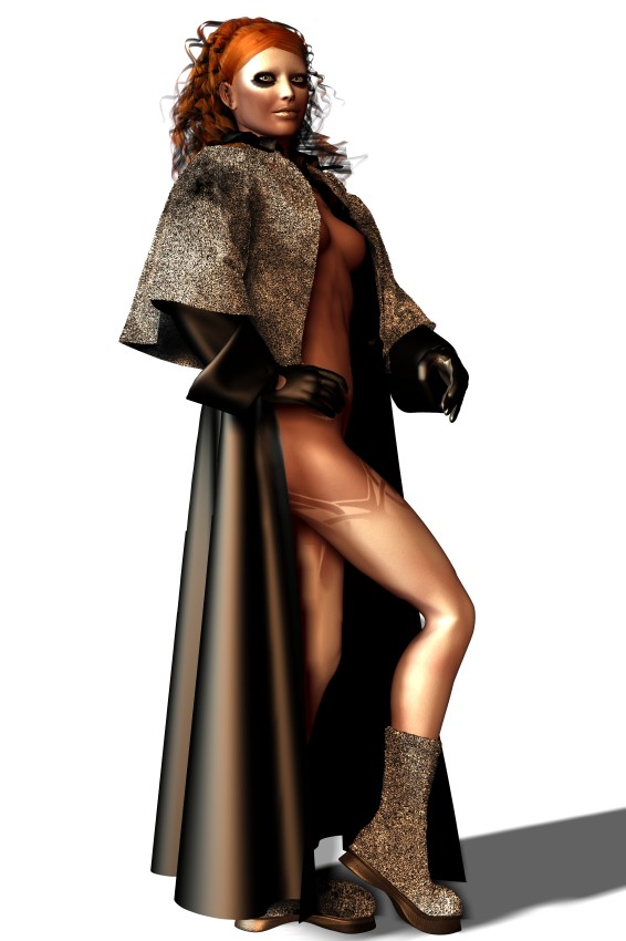 das rechte bild ist älter, und im linken bild überlege ich mir noch, ob ich die ärmelaufschläge nicht auch noch mit fell überziehen soll, und ob ich die handschuhe nicht heller oder farbiger gestalten soll.