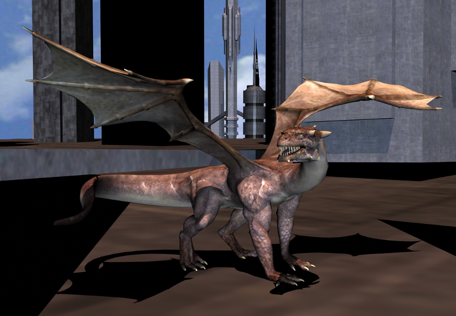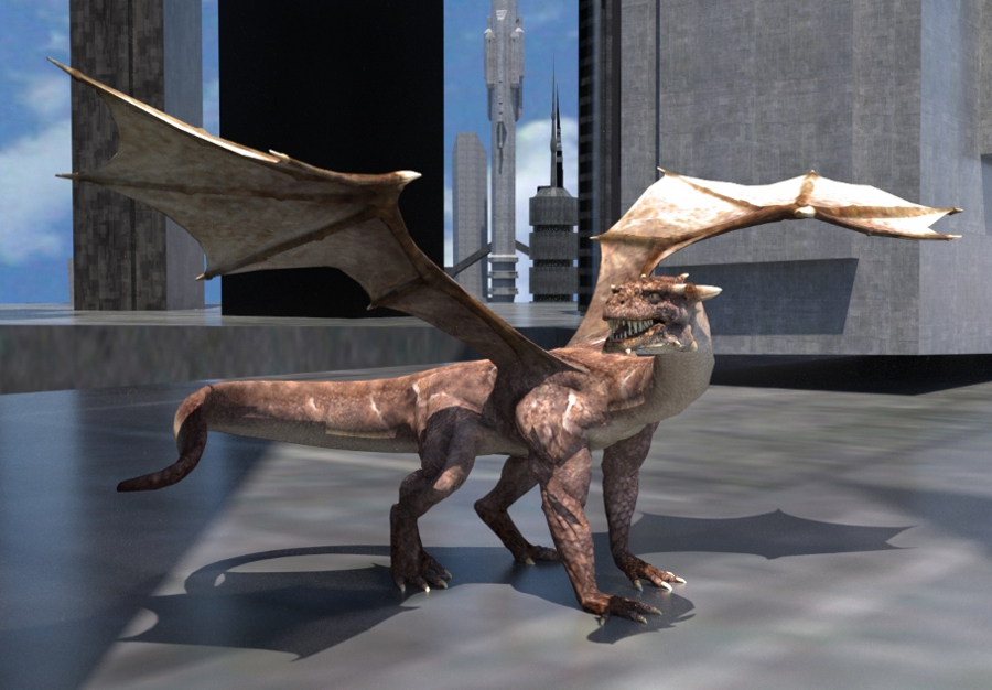 Jepp, das Luxrender-Ergebnis ist überzeugender. Im ersten Bild ist wieder der nervige "Schwebeeffekt". Ich weiss, der Drache steht wirklich auf dem Boden, aber es wirkt, als ob alle 4 "Pfoten" 10cm überm Boden schweben.