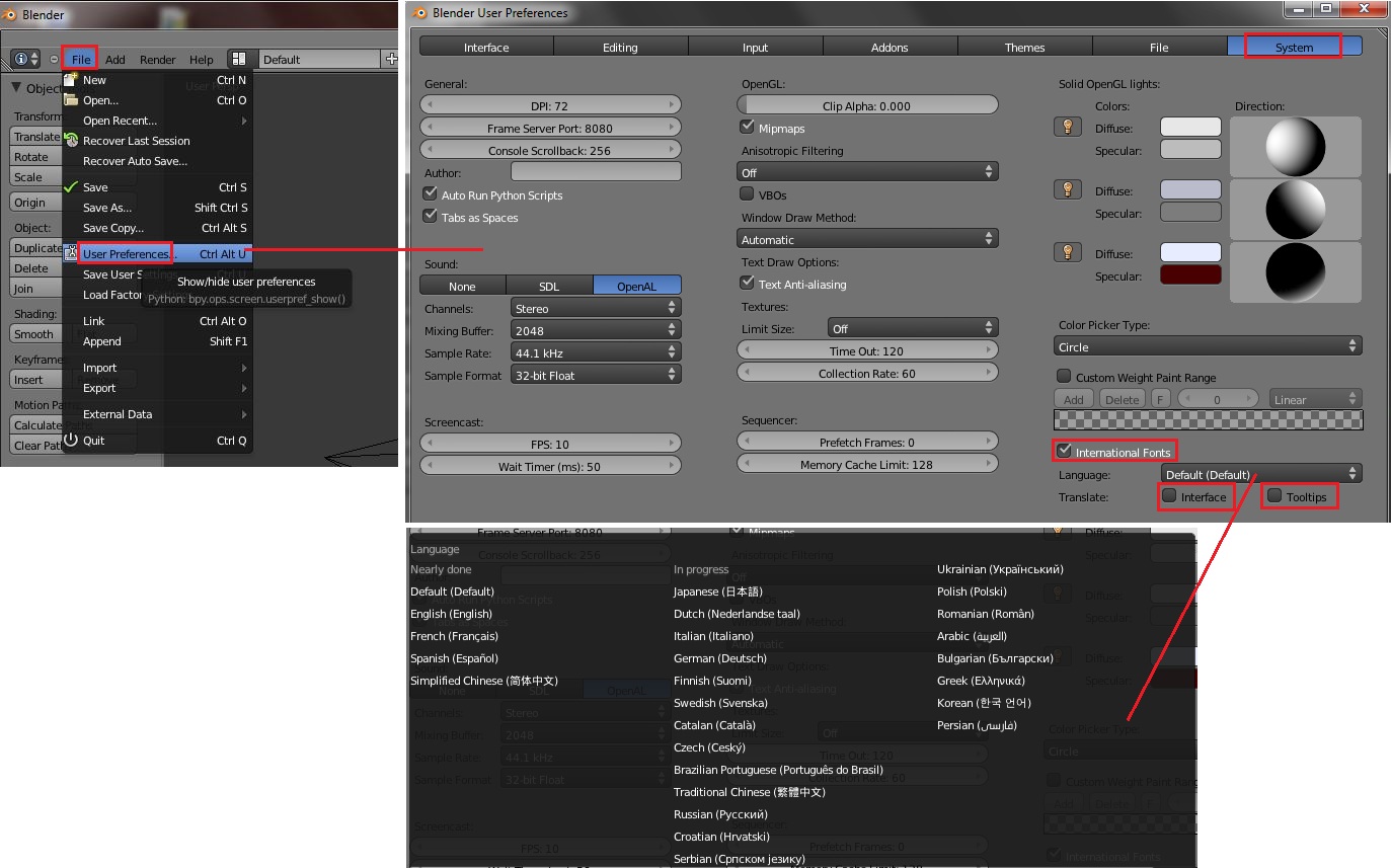 Blender in der Version 2.60 erschienen, nun auch mit multilingualen Support.