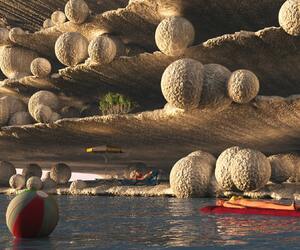 @ Rüdiger: Eigentlich ganz einfach: Ein Terrain mit einer in PS gemalten Heightmap (Streifen) und mit Kugeln eco-nomisiert : siehe Anhang.