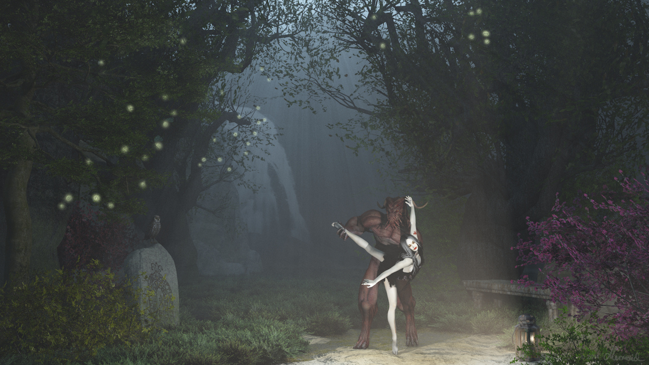...hat sie ihn, den Nyhlloghast... Ihn der ansonsten mit den Frauen nicht so sanft umgeht, im Gegenteil, der sie abschleppt und knechtet... ihn hat sie verzaubert mit Ihrer Anmut und ihrem Wesen. Soweit sogar, dass er des nachts, wenn die Glühwürmchen die Lichtung vor der Höhle verzaubern, mit ihr hinausgeht und ihrem Tanz zuschaut, ja sogar Hilfen gibt. Und siehe da, er kann auch ganz zart sein....