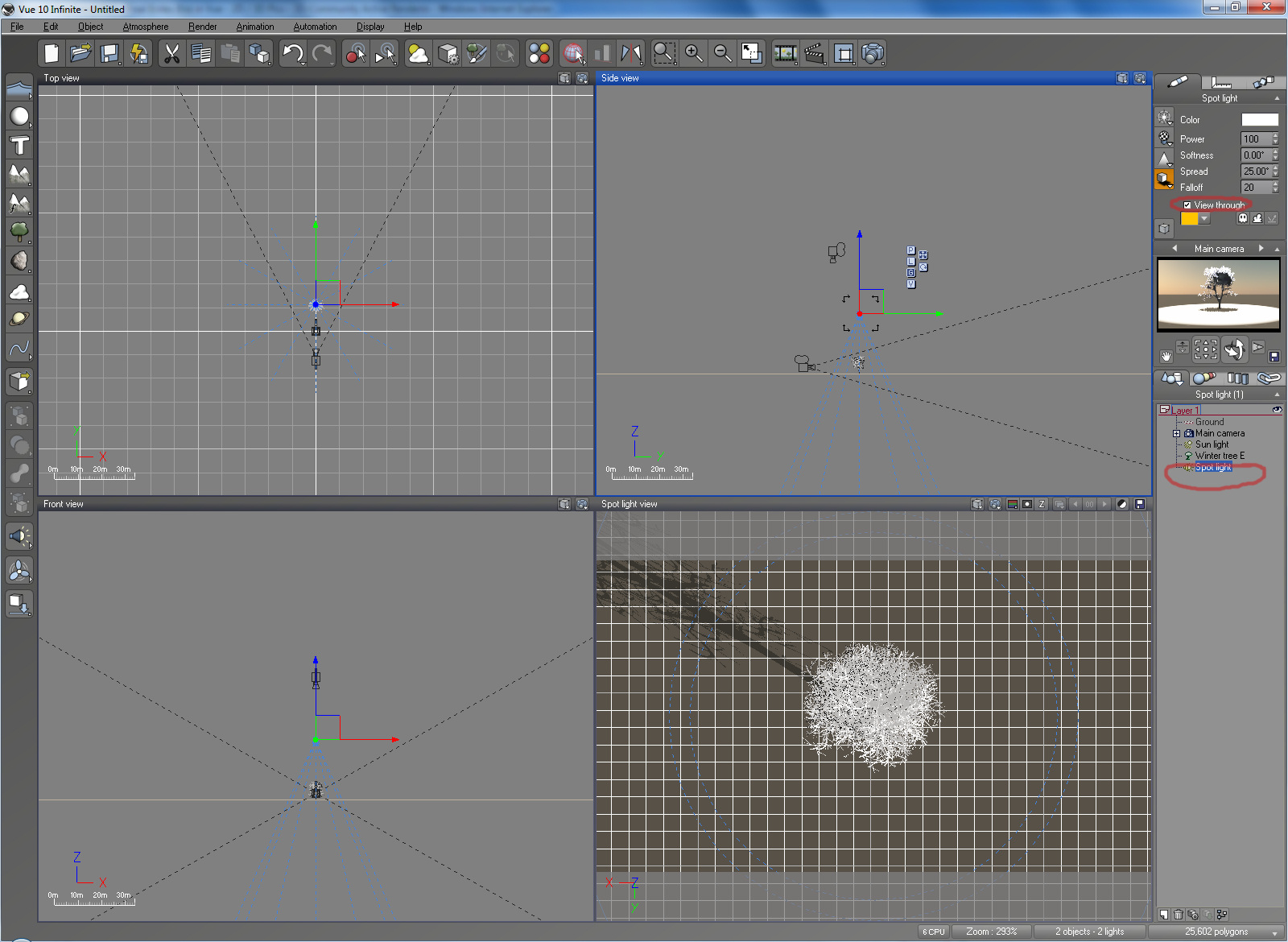 Durch das Licht gucken kann man in Vue auch, allerdings nur bei einem Spotlight, indem man es markiert und rechts oben entsprechend das Häkchen setzt (siehe zweiten Screenshot)