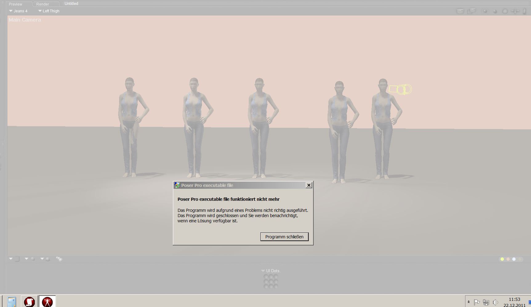 anbei ein Bildchen 5 mal V4 in CopyPaste inclusive Jeans und Weste bei Bewegung der einstellrädchen für den Oberschenkel der 5 ten Figur kam diese Nachricht