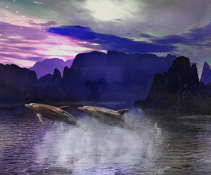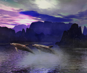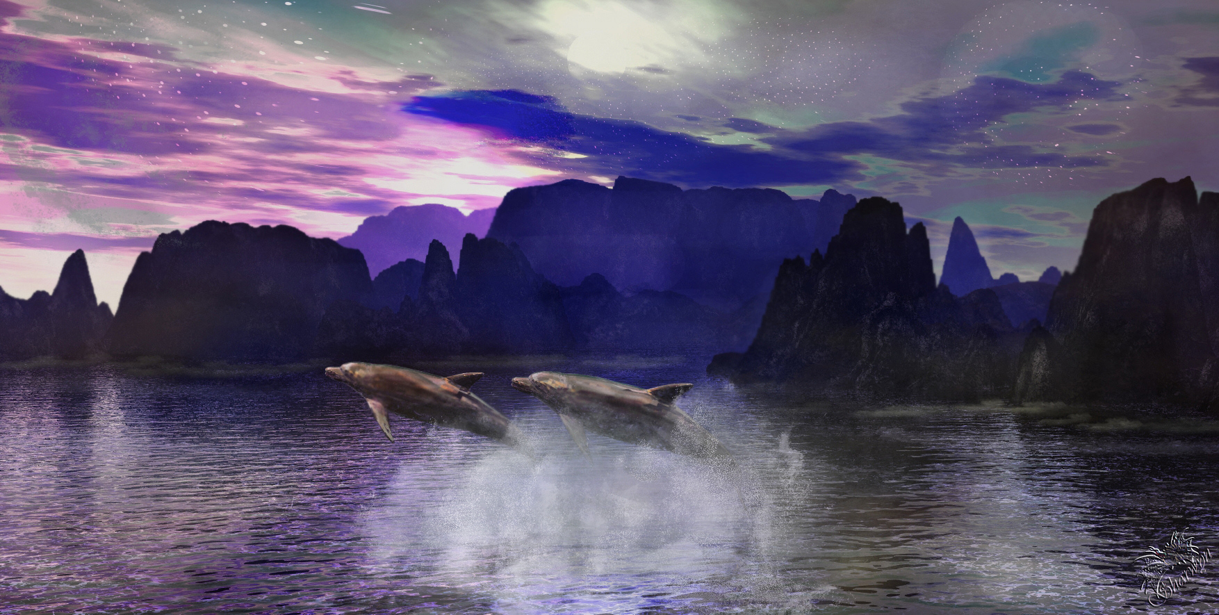 Allerdings hätte ich die Pose der beiden Delphine variiert. Denn sie springen ziemlich synchron aus dem Wasser und so was kommt ausgesprochen selten in der Natur vor.