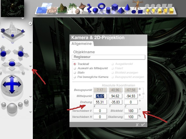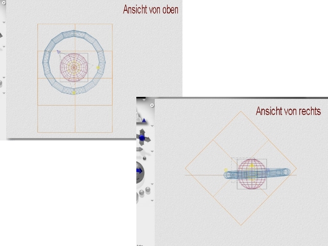 ....hier die ersten Screens der Szene: Ansicht von oben und Ansicht von rechts