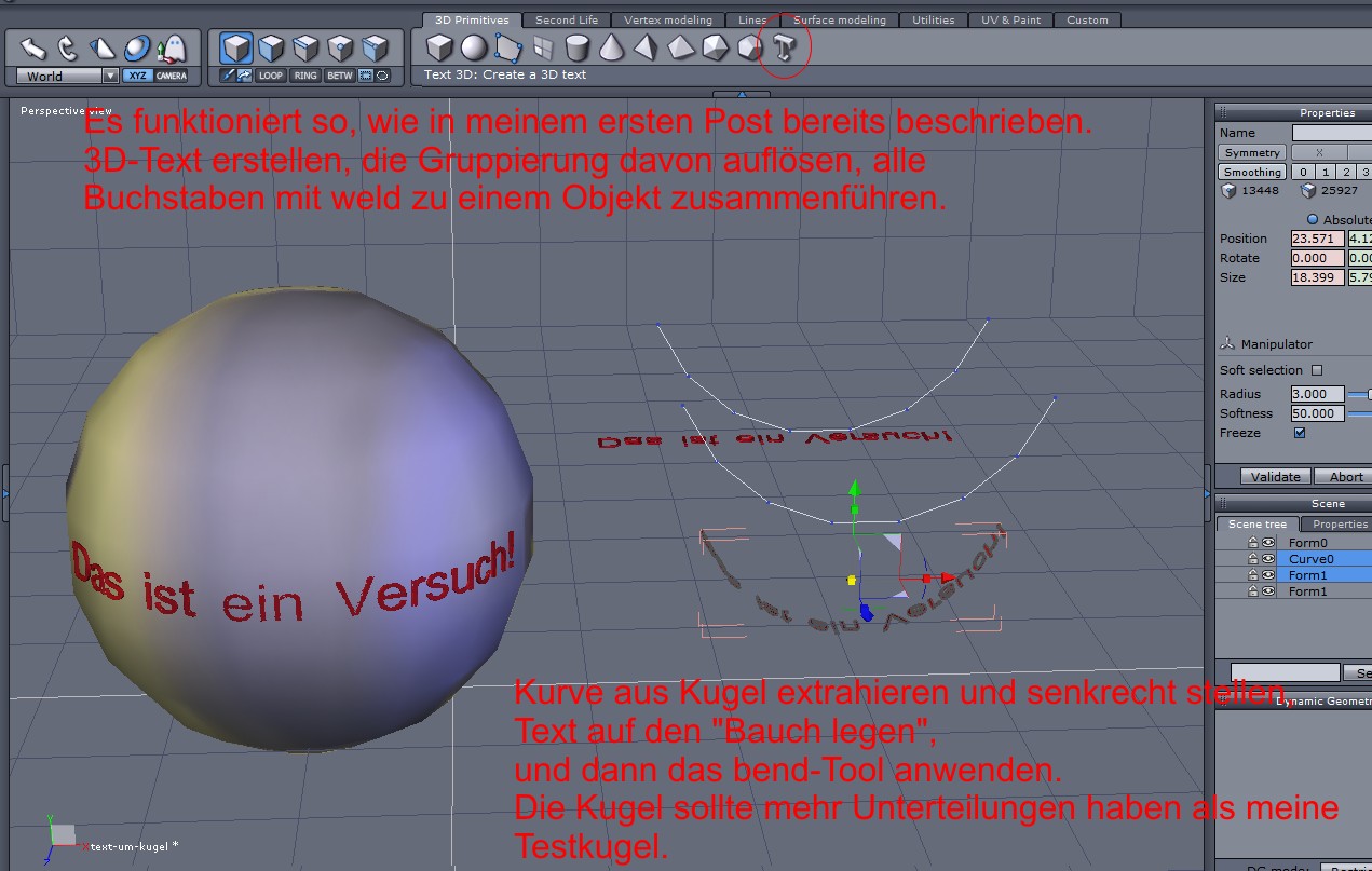 da beginnen meine "700" probleme von vorn - gibt es in carrara kein biege oder bend tool mit dem man einen geschrieben text um ´ne kugel wickeln kann?