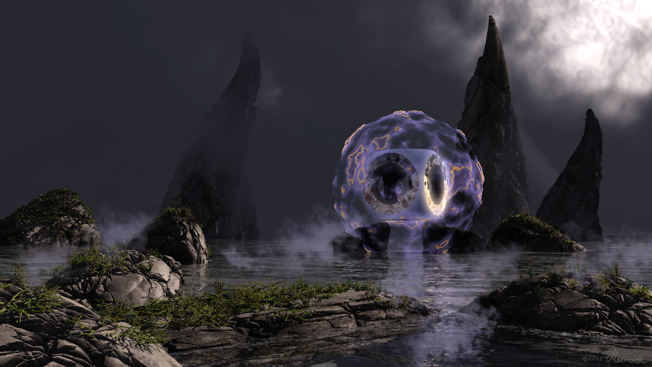 Aus dem Rumspielen mit Texturen, Materialien und Boolschen Operationen ist dies hier entstanden. Alles Vue mit Ausnahme des Nebels über dem Wasser, das ist Postwork in Paintshop ![]()