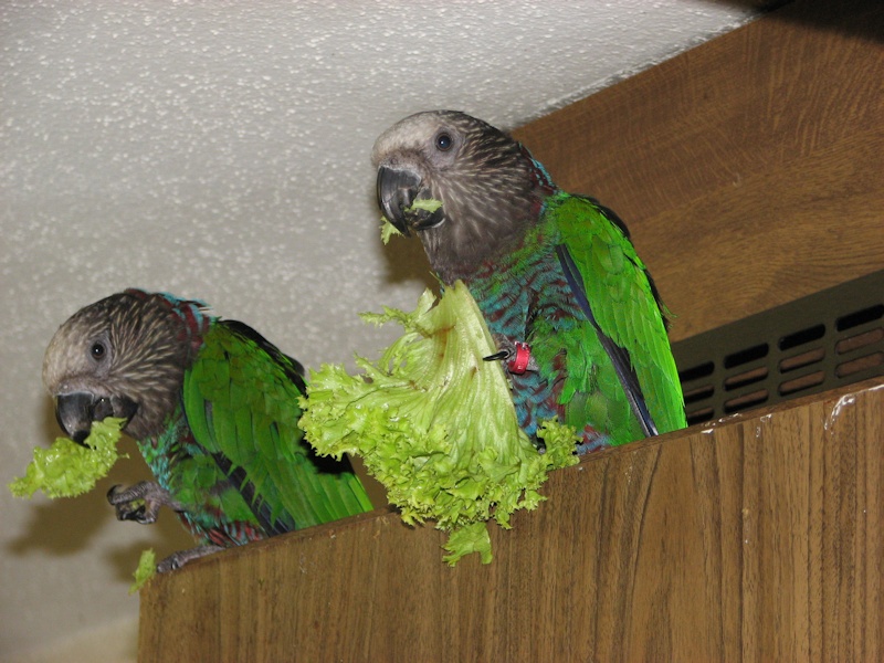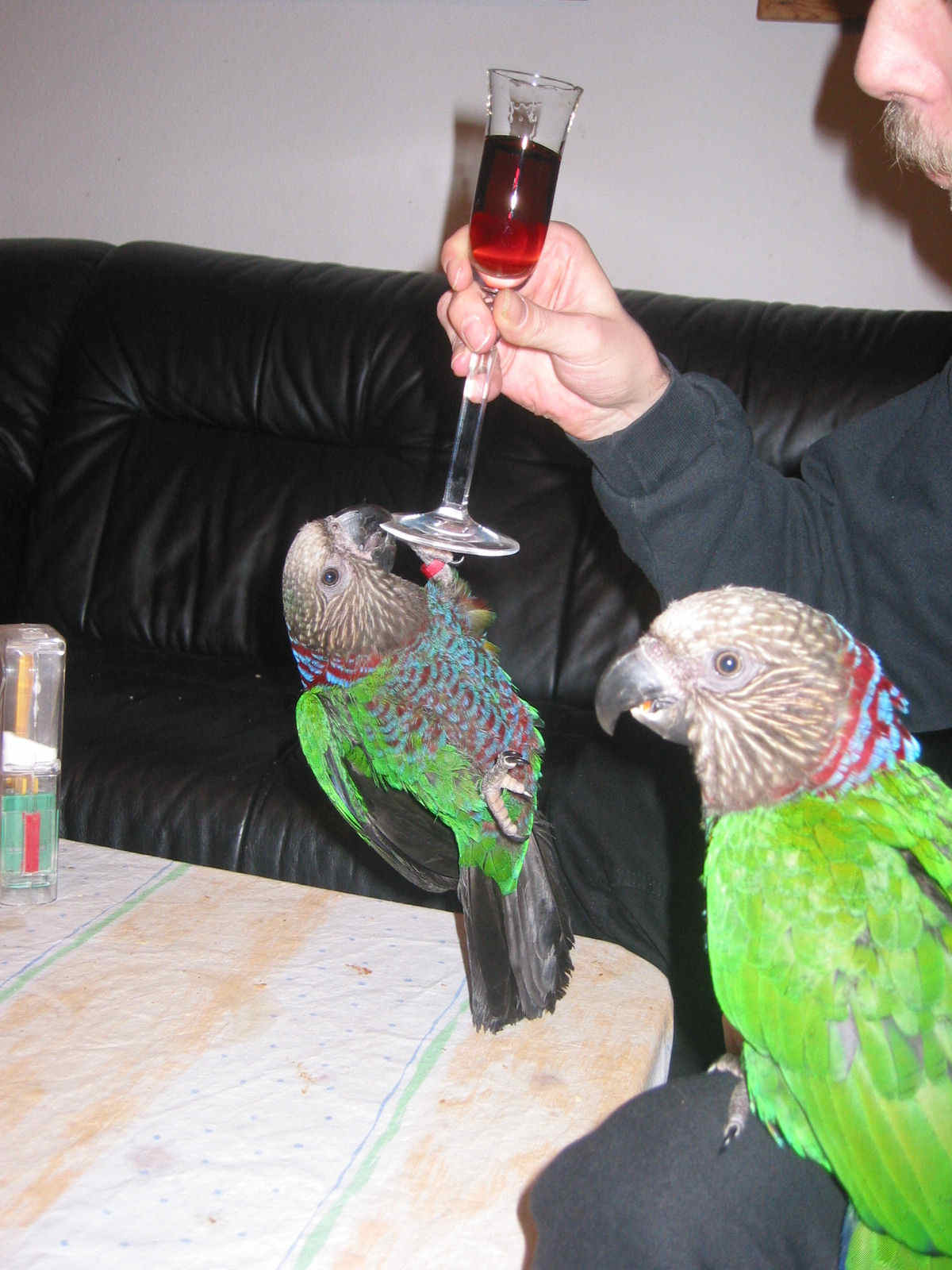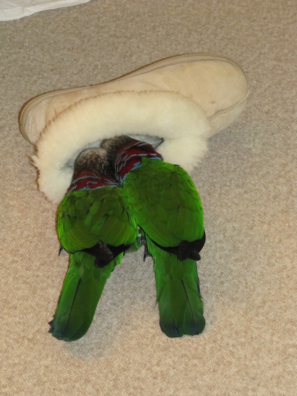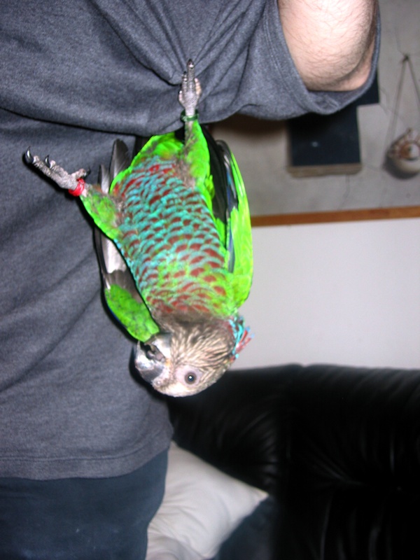 EIgentlich sollten sie ja Susi und Strolch heissen, aber durch ausführliches Schwätzen beim Züchter über Haltung etc. als wir sie abgeholt haben, kam dann der zweite Ring, der eigentlich das Weibchen kennzeichnen sollte, beim Männchen an den Fuss. Und so stellte sich dann mit der Zeit heraus, dass wir einen Suserich und eine Strolchine haben ![]()