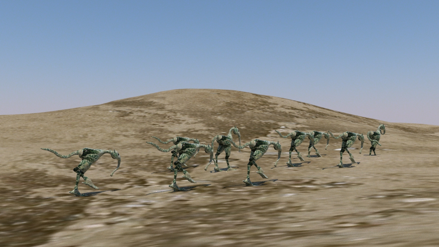 einmal die Herde mit Luxrender erstellt und einmal mit 3Delight. Hier mit Unschärfeeinstellung der Kamera