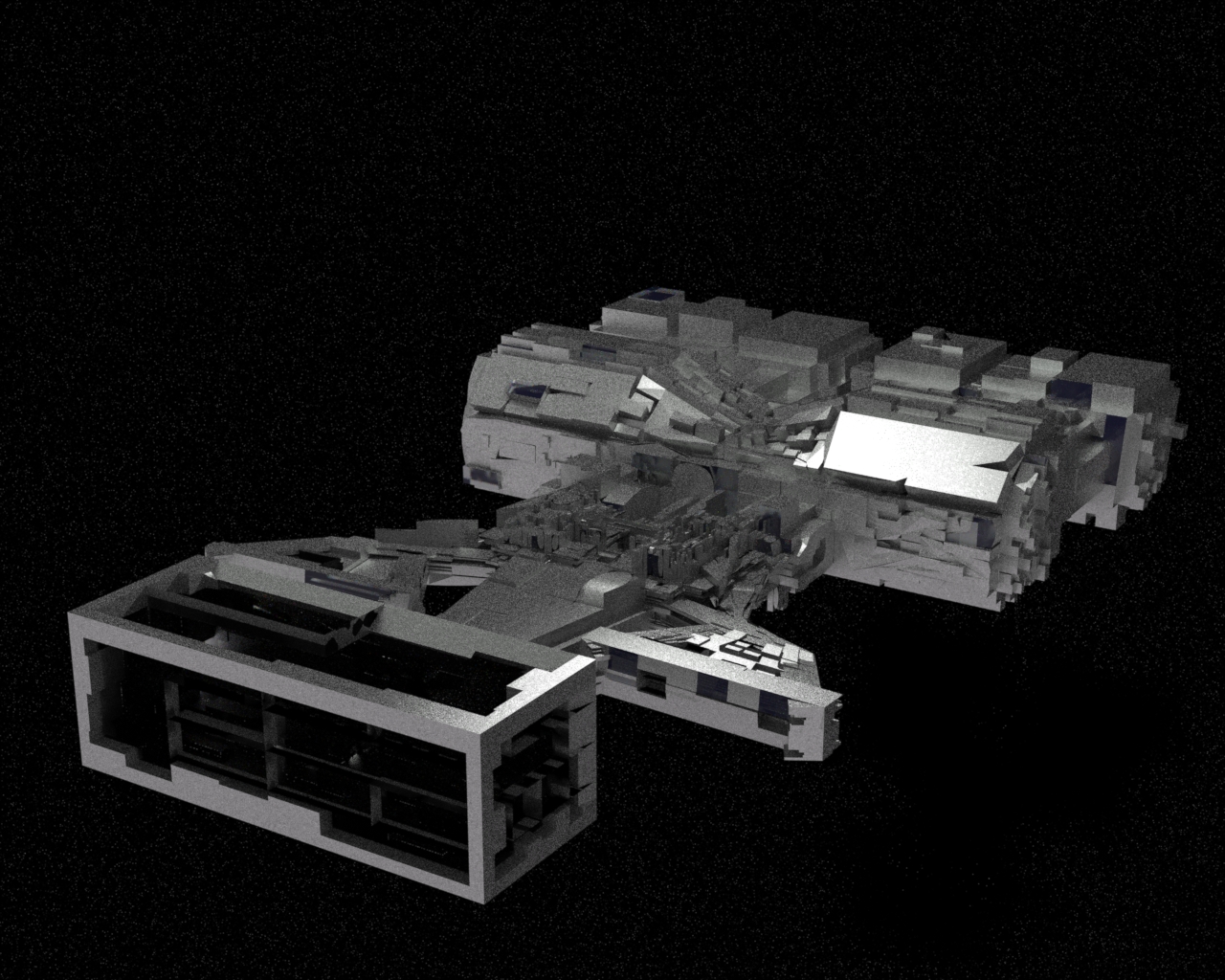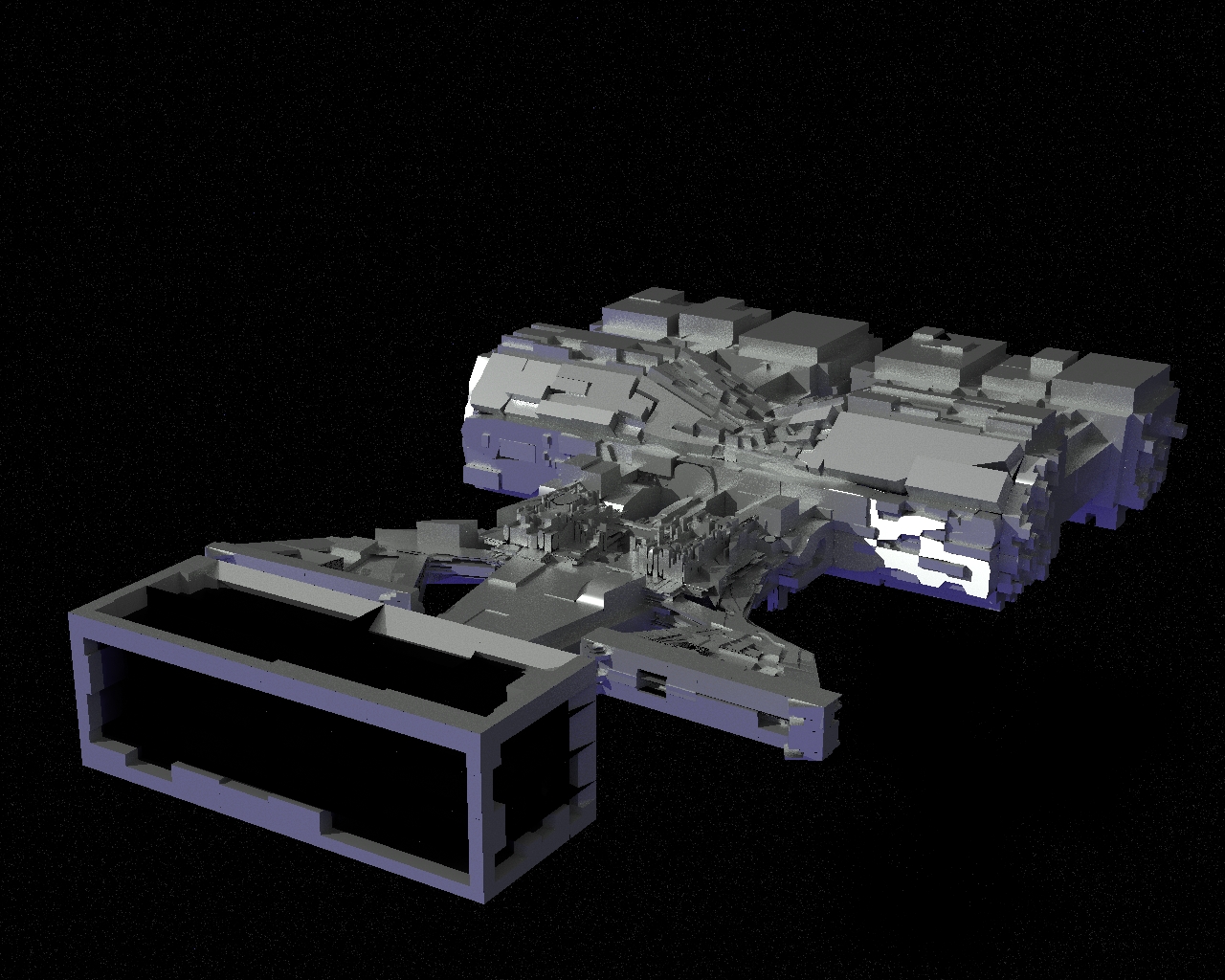 Für Realsoft gibt es ein Plugin dafür und das hat den Nachteil, dass man die Kanten der Greebles und Nurnies nicht beveln kann. Diese harten Kanten machen das Ganze etwas unschön. Falls Du aber nur einige Greebles erstellst und diese dann mittels Replikator vermehren und anordnen lässt, würde ich die Dinger an den Kanten etwas weicher gestalten, das würde die Wirkung ernorm erhöhen.