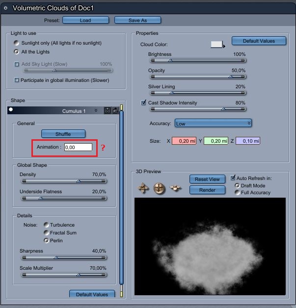 Hast sich schonmal jemand mit den Volumetric Clouds in Carrara beschäftgit?