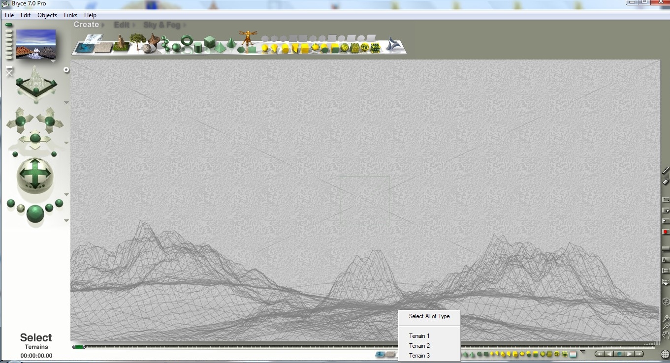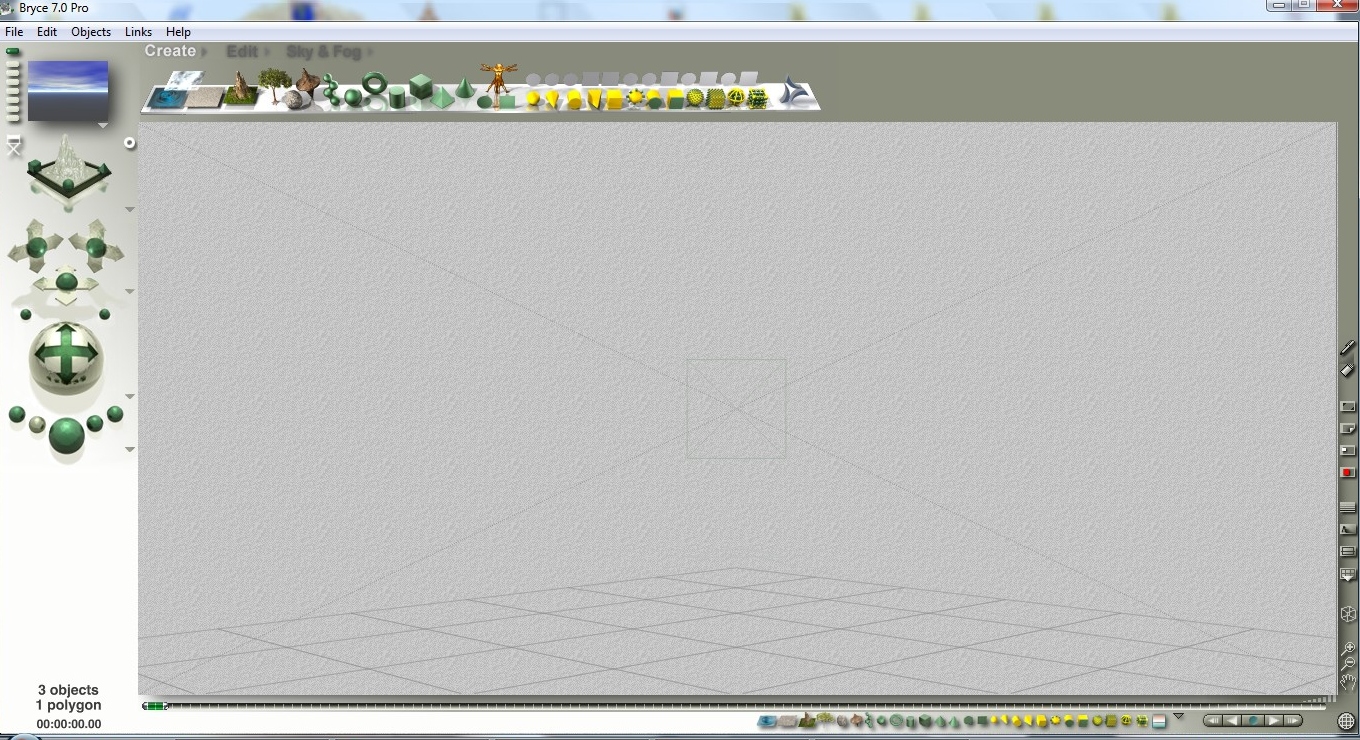 Die untere Leiste ist zum Auswählen der Objekte , also wenn du mehrere Bäume oder Berge etc . in deiner Szene hast kannst du sie alle gleichzeitig markieren und umtexturieren etc . und mußt nicht erst mühselig mit gehaltener Strg Taste die Objekte nacheinander markieren , also quasi als Arbeitserleichterung . Im Anhang ein Shot wie das Fenster aussehen muss . Ich hab Bryce auch auf dem Läppi , aber ist trotzdem alles drauf zu sehen . :o