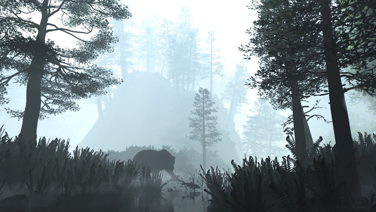 Früh an einem wirklich nebligen Morgen, tief im Wald übt sich Meister Petz im Frühstückfischen....