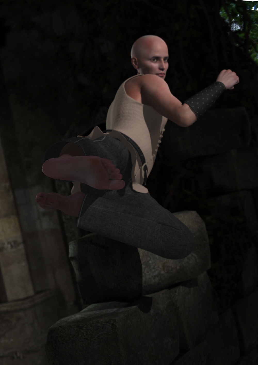 Kushanku: danke für den Tipp! Ich werd mal schauen, ob ich das so umsetzen kann. Die Pose war ursprünglich nur zum Ausprobieren (ist eh eigentlich ein Testrender) eine vorgefertigte Hiro-Pose, bei der er sich hinten abstützt. Ist also nicht wirklich "eingesprungen". Ich lass ihn auch mal was wösser gucken.