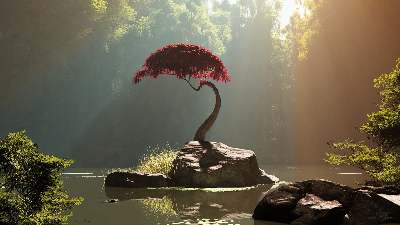 Schicker Fächerahorn und sehr idyllisches Plätzchen und Atmo. Sehr schöner Render
