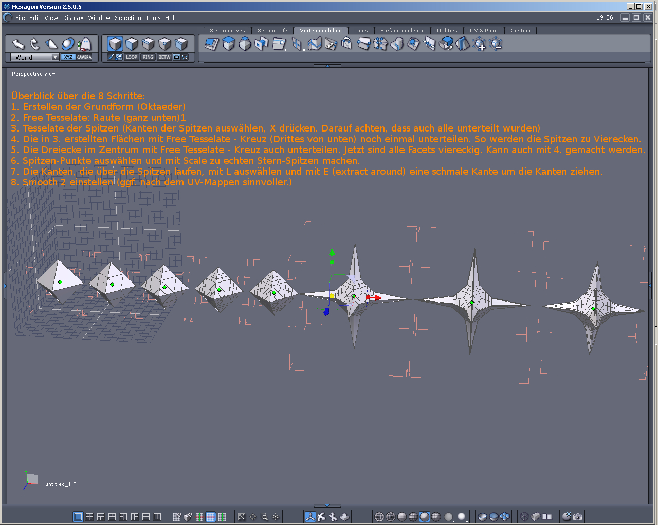 Hier mal das Modeling des Sterns als Ein-Bild-Tut. Wenn jemand von einem der Steps genauere Bilder / Beschreibungen braucht, nur sagen.