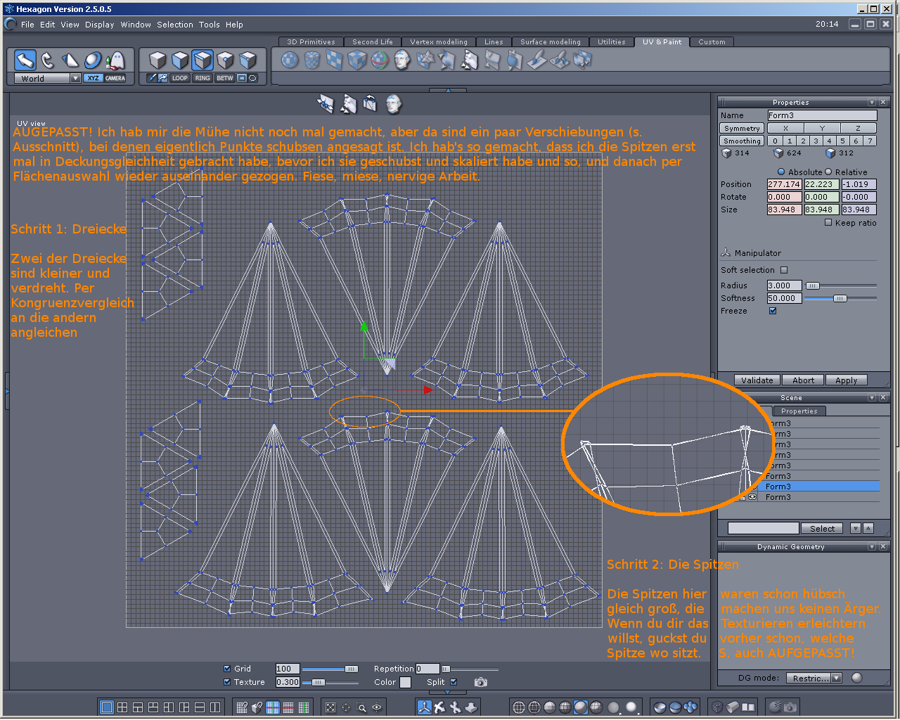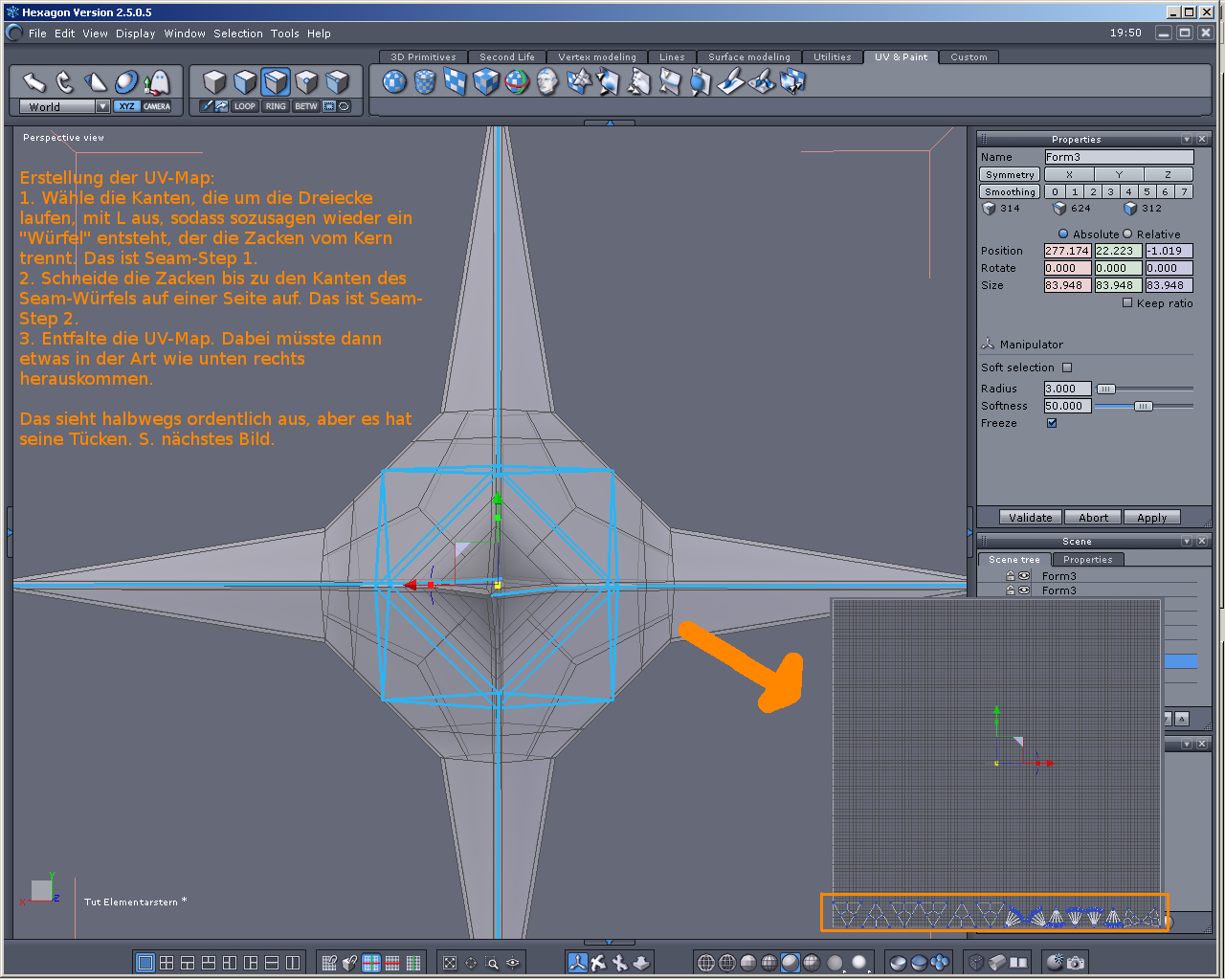 Danach jagst du das OBJ durch den UV-Mapper, ich mag den mehr als die Hex-Eigenen Maps.