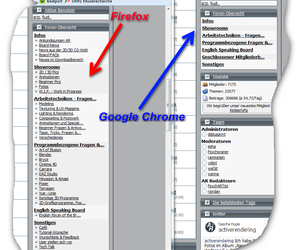 Also wie ich jetzt herausgefunden hab, ist die Übersicht da, wenn ich nicht angemeldet bin, sobald ich im Forum angemeldet bin sieht es so komisch aus wie auf der rechten Seite von meinem Screenshot oben. Und das ganze ist bei Chrome Firefox und IE so, jetzt hab ich gesehen, daß es in den Profileinstellungen da eine Option zum einstellen der Größe gibt, aber das ändert auch nix, und vor allem hab ich da noch nie was dran gemacht - sehr seltsam das alles.