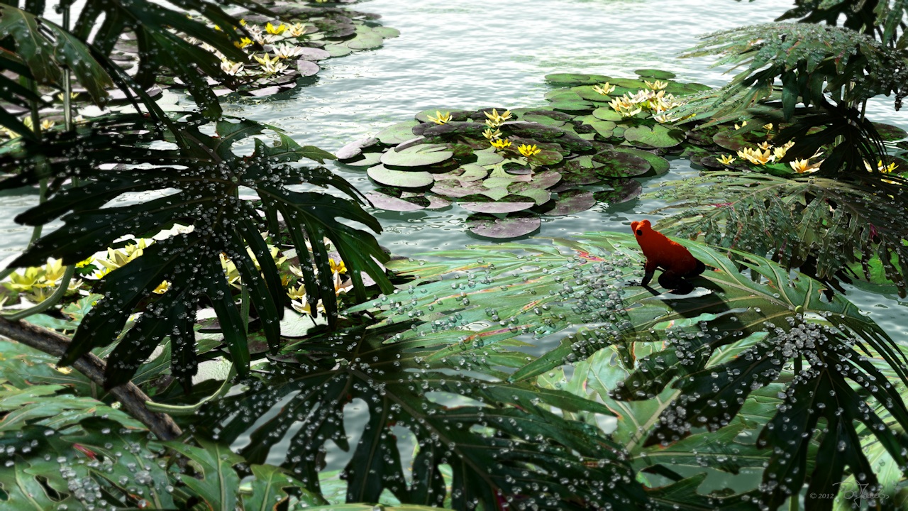 wenn die Wassertrofpen noch eine kurze Zeit auf den Blättern bleiben, schaut dieser farbige Geselle über sein Reich...