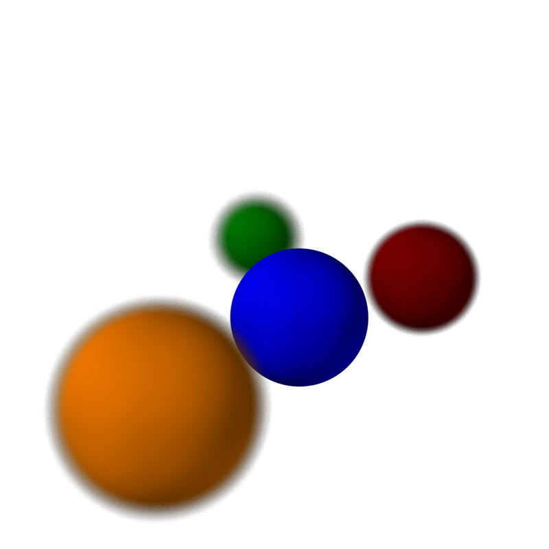 Ich hab mal zwei Bilder angehängt: Vier Kugeln, fokussiert immer auf die Blaue. Bei dem schärferen Bild ist F-Stop 9.59, bei dem mit den deutlich verwaschenen Kugeln ist F-Stop 1.79. -