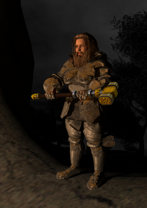 Ich hab einen schönen neuen Charakterarchetyp gefunden und musste das Bild, das in meinem Kopf erschien (und zu dem ich dann auch den Charakter gebastelt habe) unbedingt rendern. Ich wollte das Mädel auch in einer Runde unterbringen (hat leider nicht geklappt), und der SL meinte, in der Welt hätten Zwerginnen allerdings Bärte... Naja, wenigstens gibts für Genesis einen vernünftigen Bart. Und die Möglichkeit, einer Frau die tollen Rüstungen für M4 anzuziehen ^^