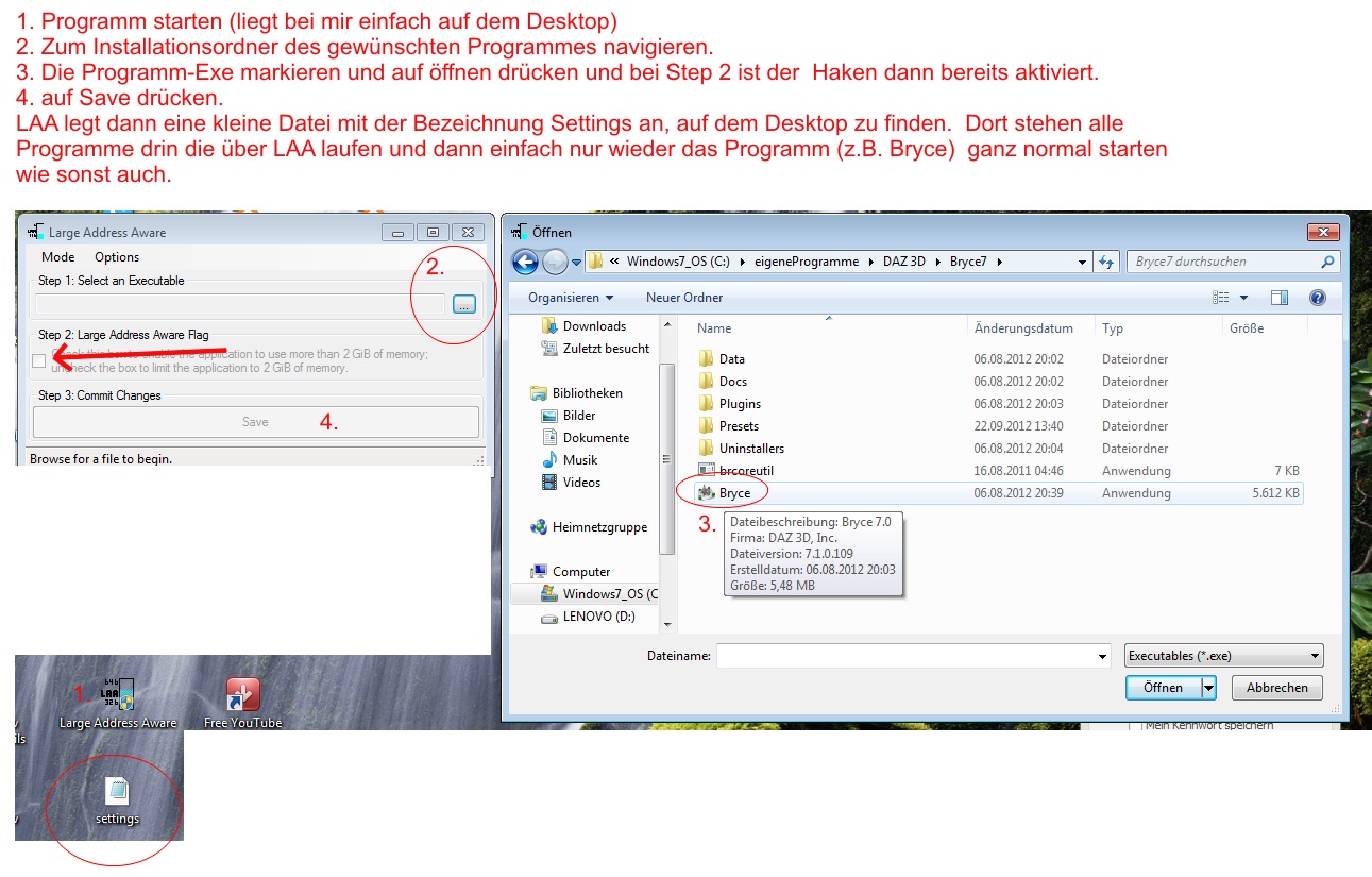 Meine Frage , was hat es auf sich mit dem Tool "Large adress aware" - funktioniert das auch mit Windows7 64bit Systemen , und wie wird das überhaupt gehandhabt ?