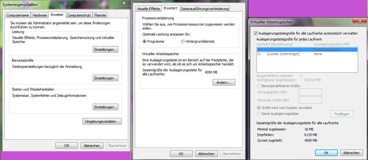 Ich häng mal einen Screen an von meinen Einstellungen. Es ist auf automatisch eingestellt. Ist das dann so zu verstehen , dass sich die Auslagerung bei der jeweiligen Anwendung danach verändert wieviel diese gerade benötigt ? Das System hat 4GB ram , so wie es aussieht kann man es aber bis 6GB ausreizen? Wo bekommt das System dann die nicht vorhandenen 2GB extra her ? Oder ist es generell so , dass virtuell immer mehr genutzt werden kann ?
