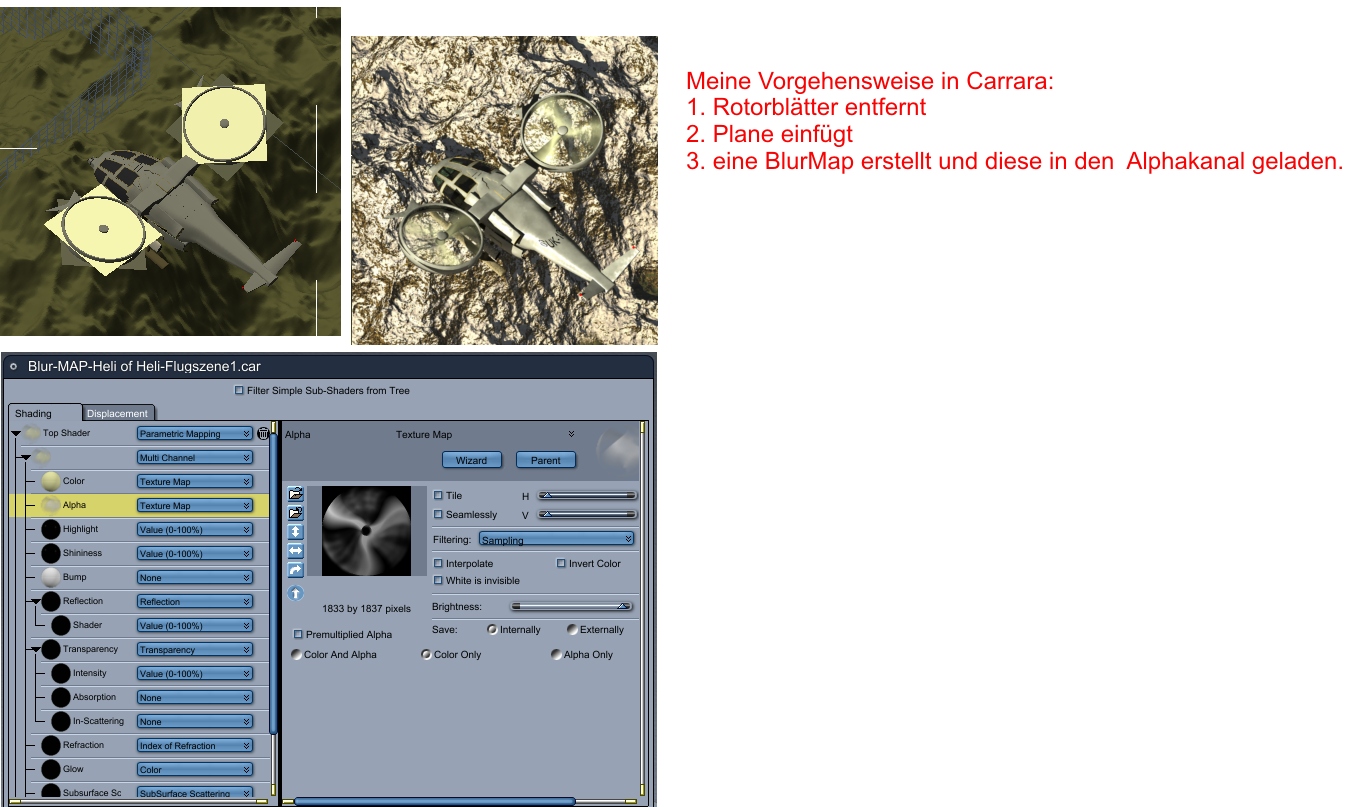 Beim Modell sind ein verwischtes JPEG der Propellerbewegung und ein schwarzweißes Transmap enthalten, habe in D|S und Poser schon alle möglichen Kombinationen im SurfaceTab und im MaterialRoom ausprobiert, Erfolg Fehlanzeige! ?(