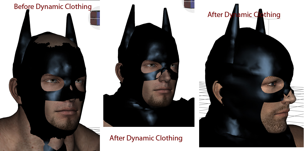 ich habe also mit Hilfe der Hotline mein Dynamic Clothing in DS4.5 wieder zum Funktionieren gebracht und gleich mal die BatmanMaske für M5 ausprobiert.