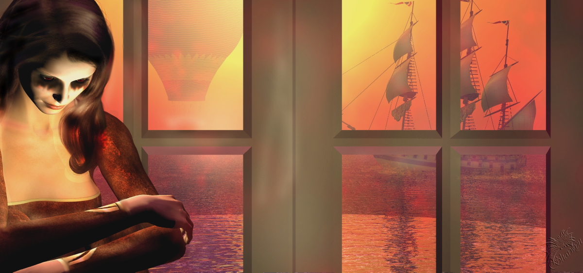 Och, der Ballon kann schon dableiben, nur um einiges kleiner, weil weiter entfernt, gäbe dem Fensterausschnitt noch zusätzlich Tiefe, die Figur evtl. etwas ins Bild ziehen, kann, muß aber nicht! ![]()