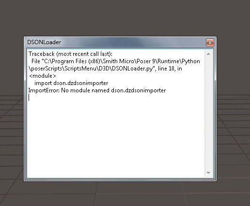 From your screen shot, you’re using the German version of Poser. As far as I know, it has SR2 only. DSON importer requires SR3 for Poser.